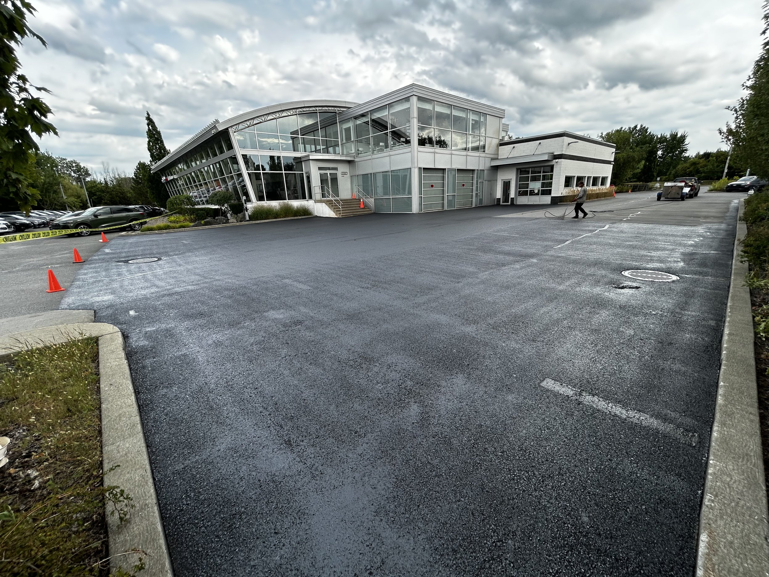 — Martin L., Saint-Bruno— Samuel., Dubois« Stationnement de notre commerce refait à neuf. Résultat parfait, délai respecté et l’équipe était vraiment agréable. Merci ! »