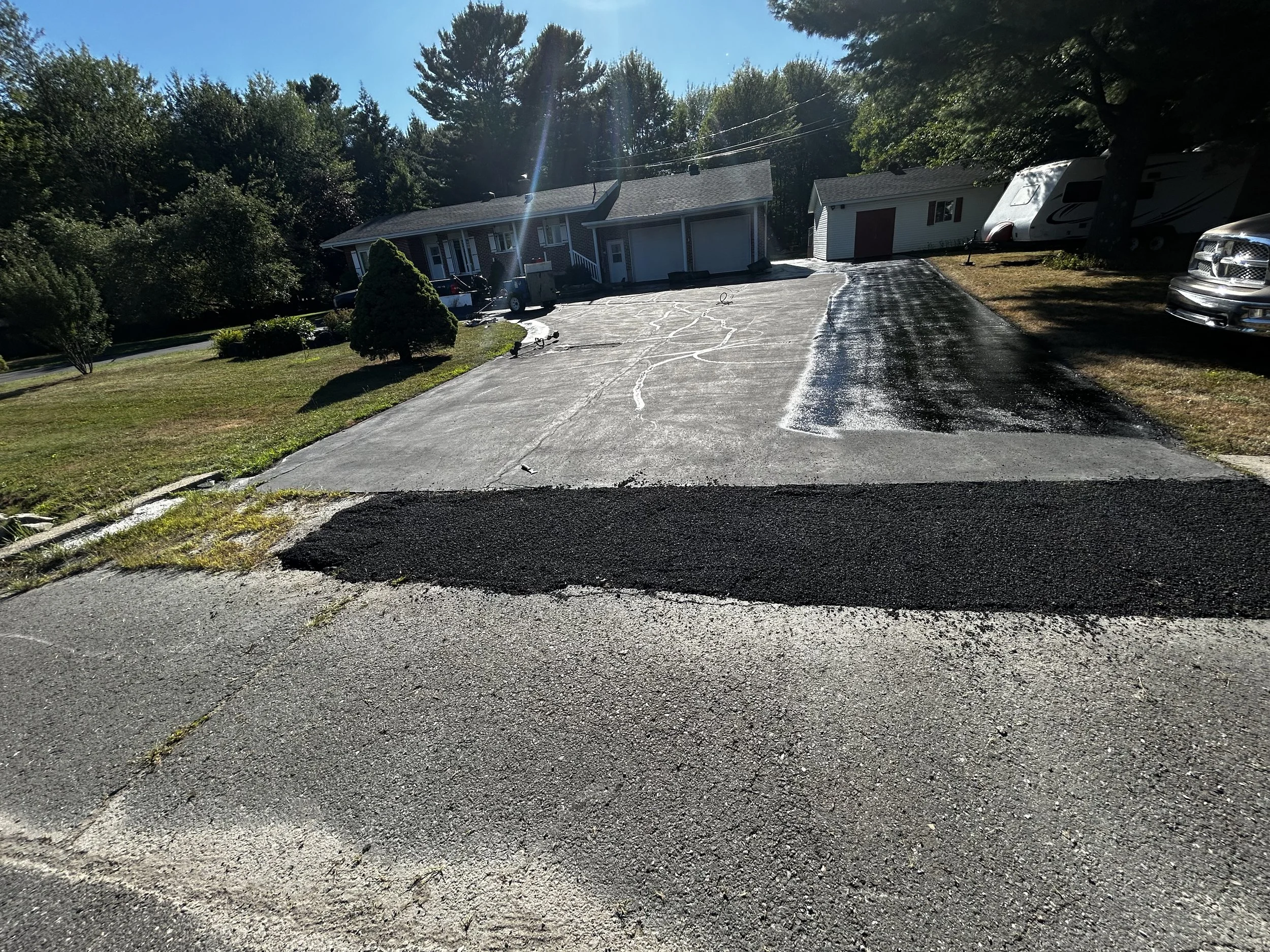 Avec Pavage Blanchette, vous profitez d’une application de scellant au bitume au gun, précise et durable, qui protège votre investissement et redonne un look neuf à votre surface.
